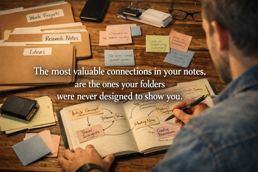 That connection exists. In fact, it is sitting in your notes right now. But your app will never show it to you, because apps don’t look for connections. They look for folders.